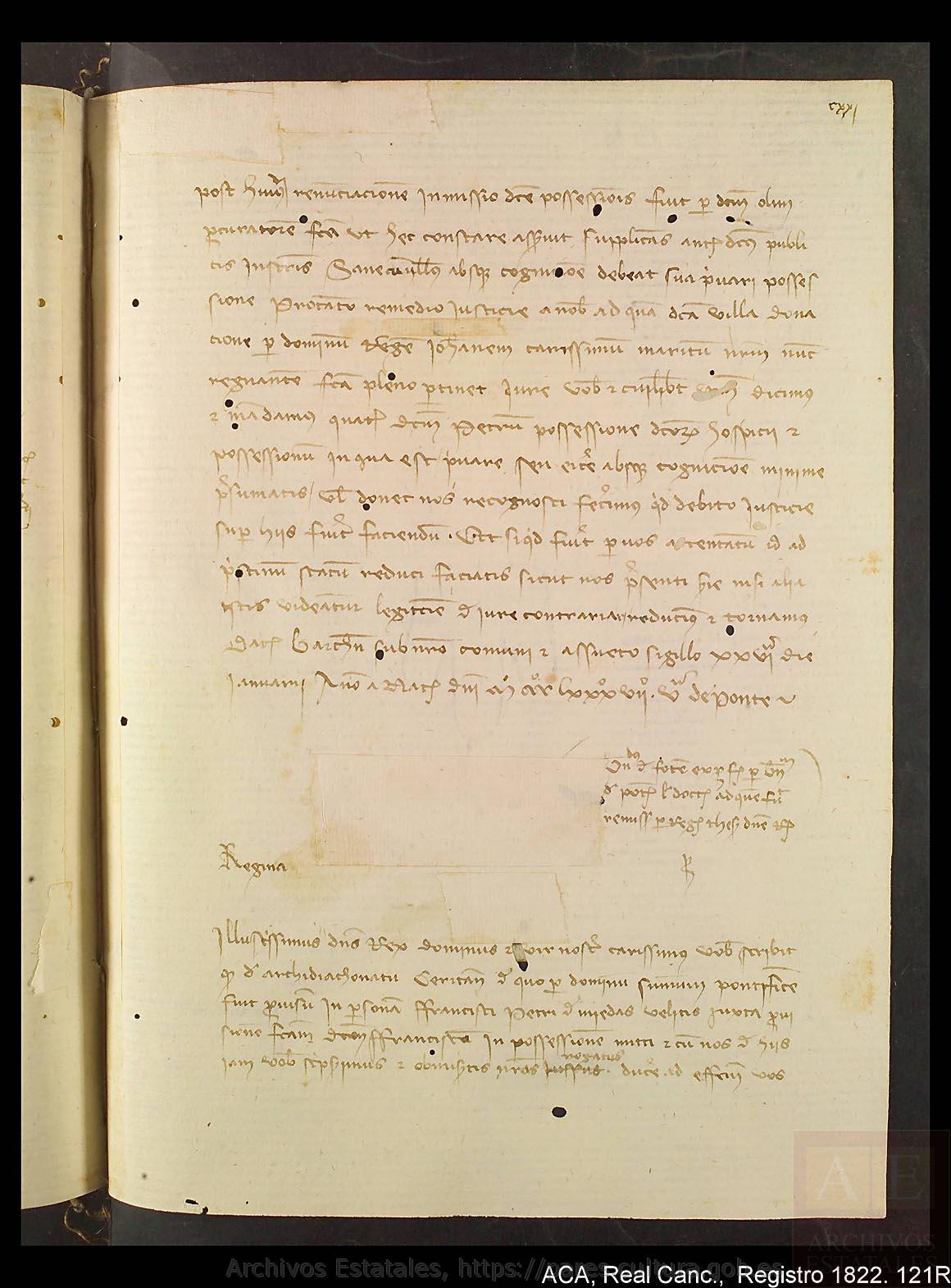 Sourcing: this is a document that manages legal authority over the town of Cubelles and so Violant, exercising her power as queen, can arrange a change in that authority; the person who appears to have lost out in this document is Bernat da Fortía, a known adversary of Joan and Violant