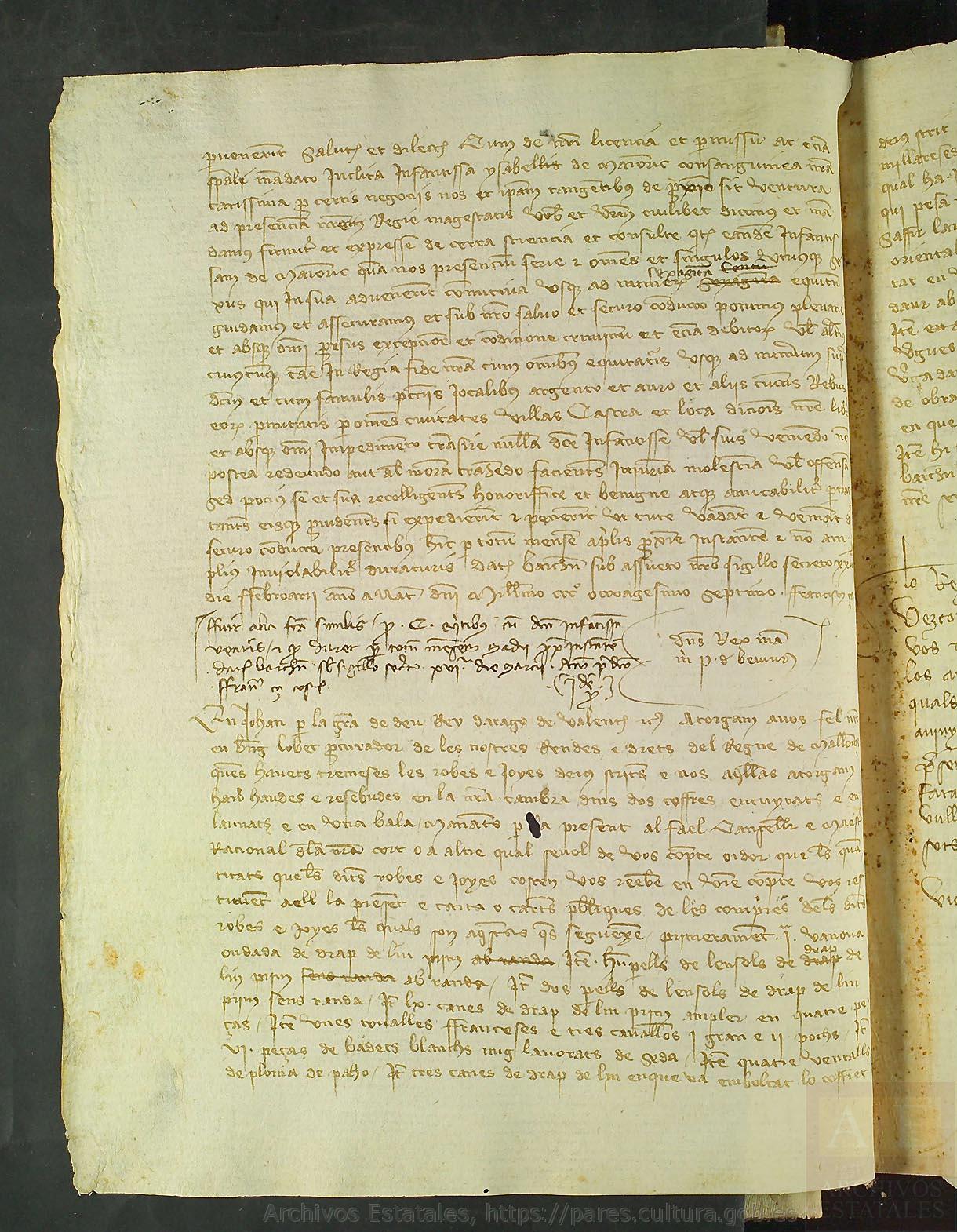 Sourcing: Berenguer Lobet was a long-serving procurator for Joan, the person who handed out the actual payments for the items purchased by the king1; although this is much like an inventory or shipping manifest, Joan wants details included in this letter and that leads me to think his purpose is to celebrate the level of luxury in these items
