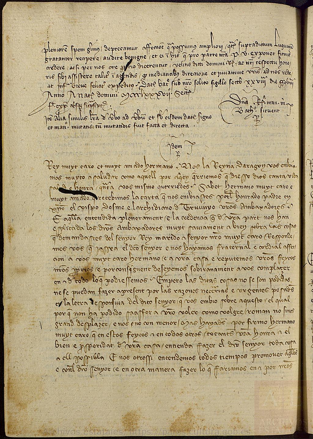 This document imbues Luchino Scarampi with a level of power and authority to deliver informatino from the queen and king about their position on matters up for negotiation in the marriage contract of their daughter.